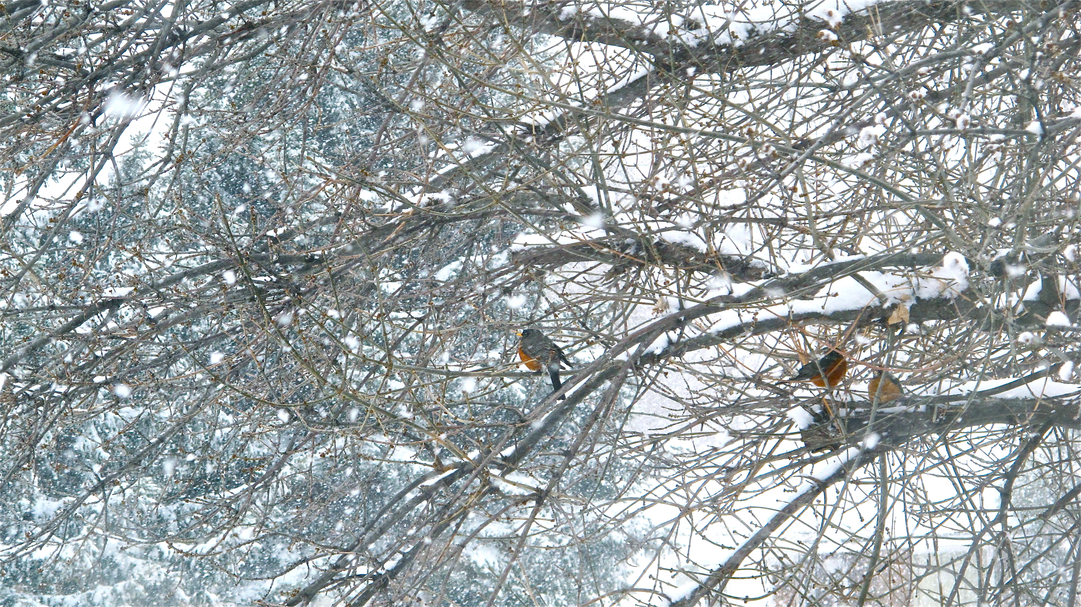 According the wind whipping huge flakes of snow around the door and shoving icy cold down our necks, the calendar, robins and croci are all delusional.