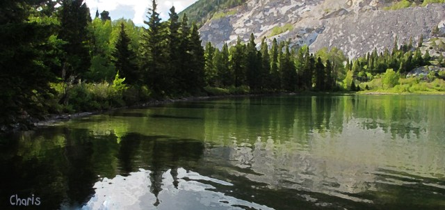 After a downpour in the Pass yesterday, the air was still and smelled so sweetly of pine and new aspen sap. After the storm the lake glistened with hope.
